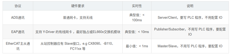但至于为什么会在 ADS 相关的资料中看见 EAP 相关的信息,是因为 EAP 虽然支持实时通信,但也支持异步的非实时通信。异步的非实时通信只能使用 EtherCAT 中 AoE(ADS over EtherCAT)的邮箱通信实现的,但是 AoE 又是和 ADS 相关的,所以才有了关联性描述。