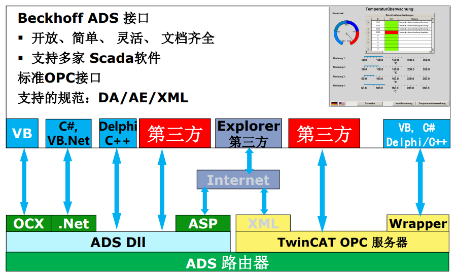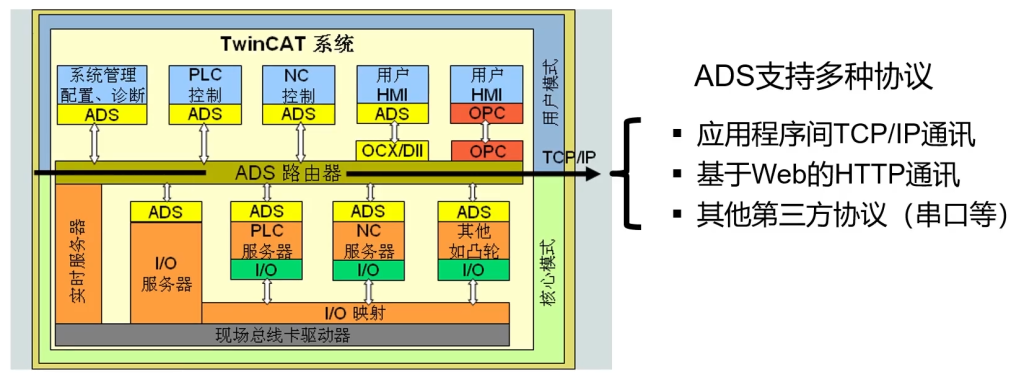 然后就是我们用户自己写的一些程序,其都是使用的 TCP/IP 协议进行和 ADS Router 进行交互。