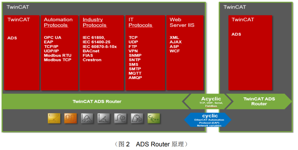 注意:Ads 通讯不是一个实时的通讯协议,其通讯过程受到系统和网络状况的多重影响,无法保证一个稳定的通讯时间。只不过因为如果在一个实时操作系统下,通信时间较短,各个进程间使用进程间通信,所以实时性能满足。
